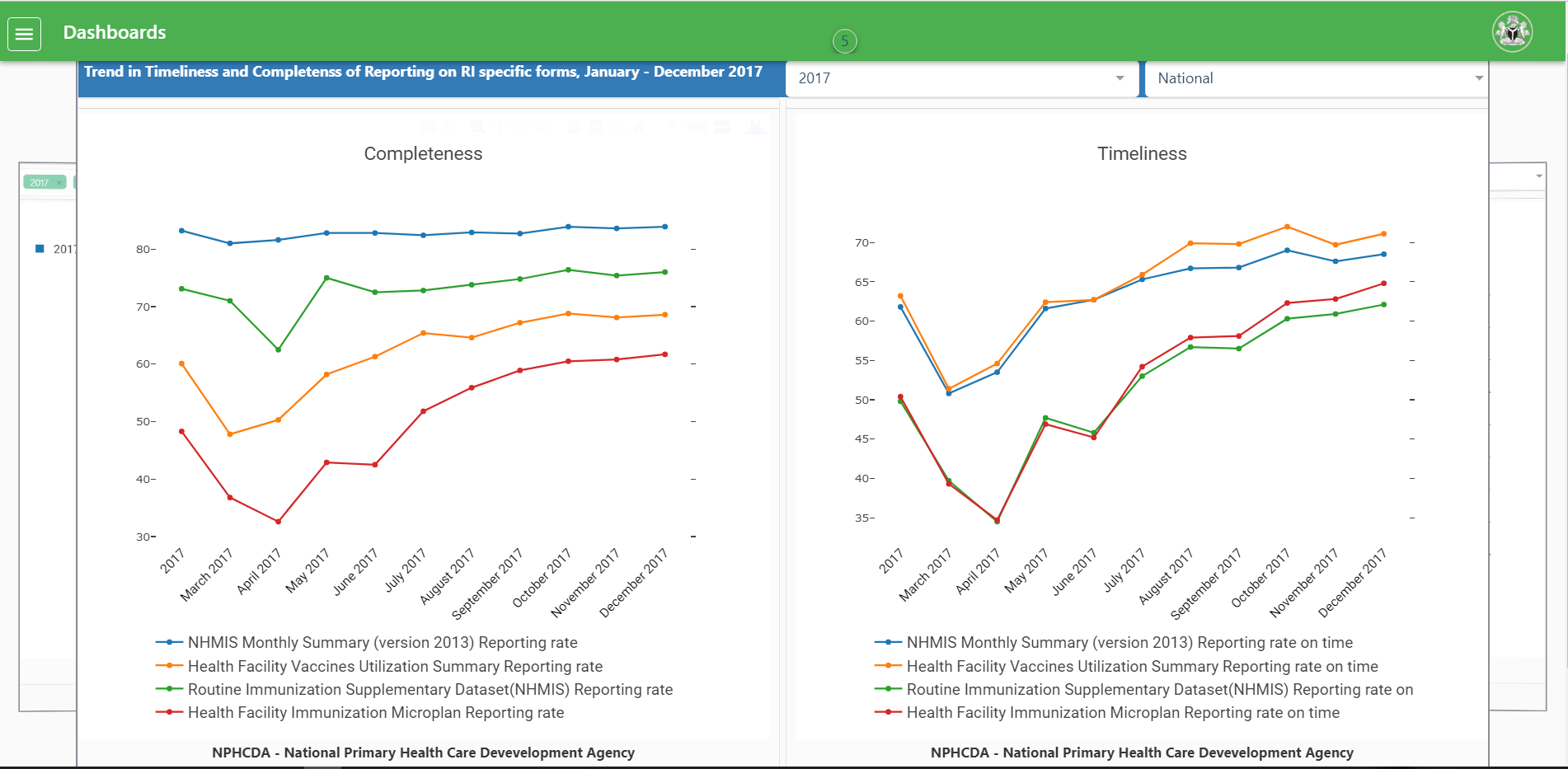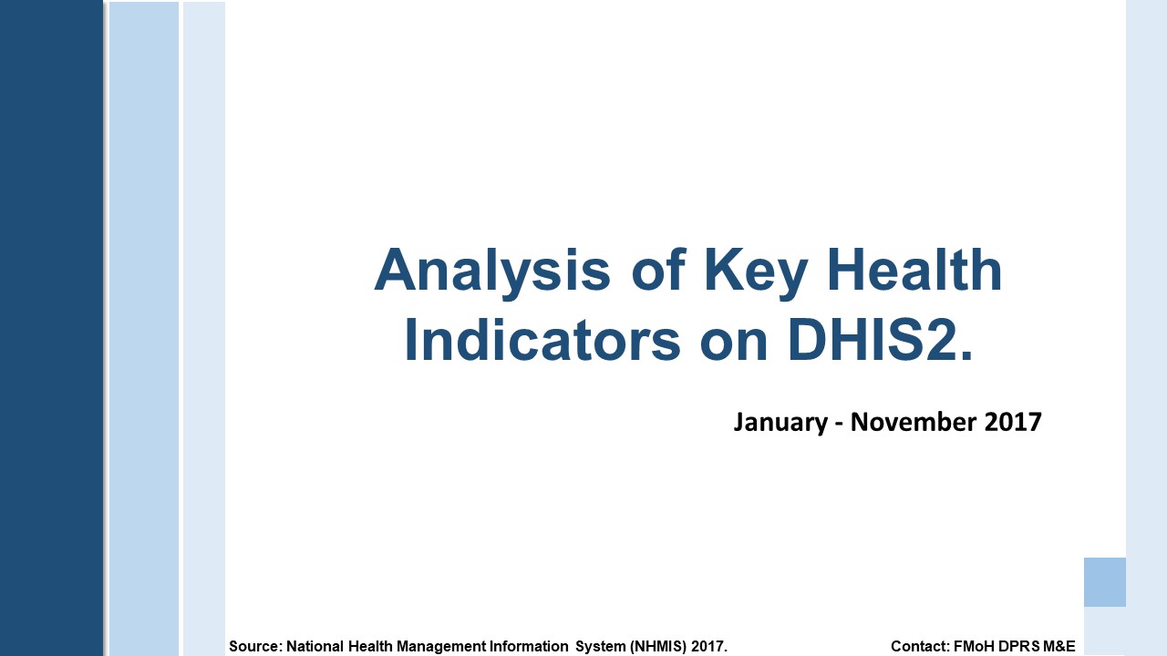 For the Honorable Minister of Health, we are developing a dashboard that summarizes selected key health indicators found on the NHMIS platform.